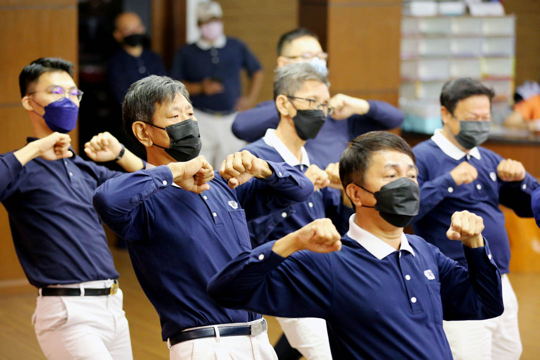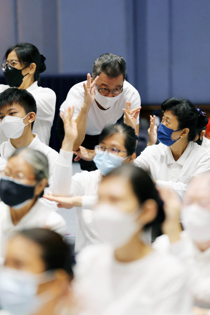 汉字对蒋章源来说就像是天书、看不懂方块字。“我是懵懵懂懂投入,但是既然答应就认真完成,只要多花一点时间,我一定可以!”在家中或车上,只要有空他便聆听演绎曲目,熟悉节奏和偈文,而且不仅每个星期五与团队一同出席经藏演绎暨共修,当志工邀约他承担演绎小种子(老师),协助调整自己队上成员的动作,他也一口答应。这意味着他需要提前一天前来练习动作,每星期必须安排两天投入手语演绎练习。