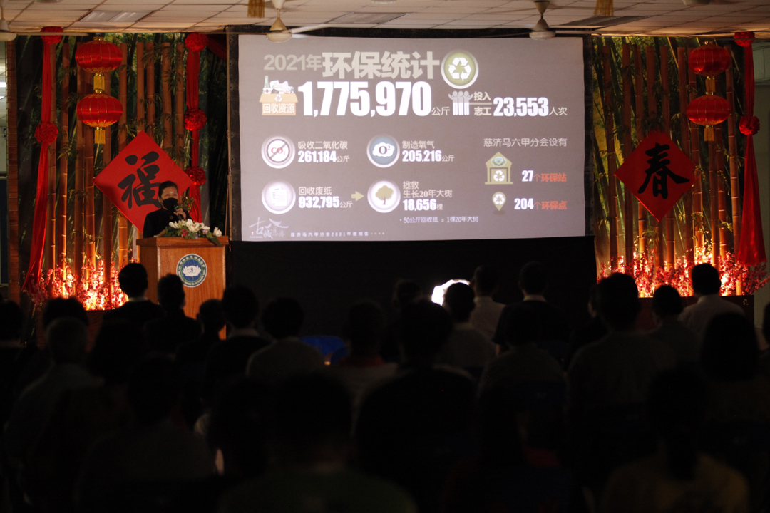 此外,马六甲慈濟静思堂从11月10日至12月19日成为疫苗接种接中心,为两万六千九百位民众提供服务,共投入两千四百多志工人次。每一場次岁末祝福,也邀约不同的志工上台与众分享投入疫苗种接中心的欢喜和收获等。