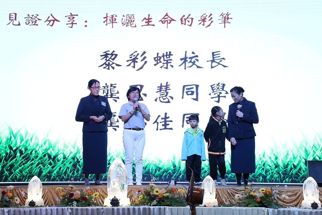 此次,课辅班的两位老师陈丽莲及黎彩蝶、学生龚思慧及慈济志工陈淑丽(虑宜)分别在两场次中分享孩子的成长与心得。