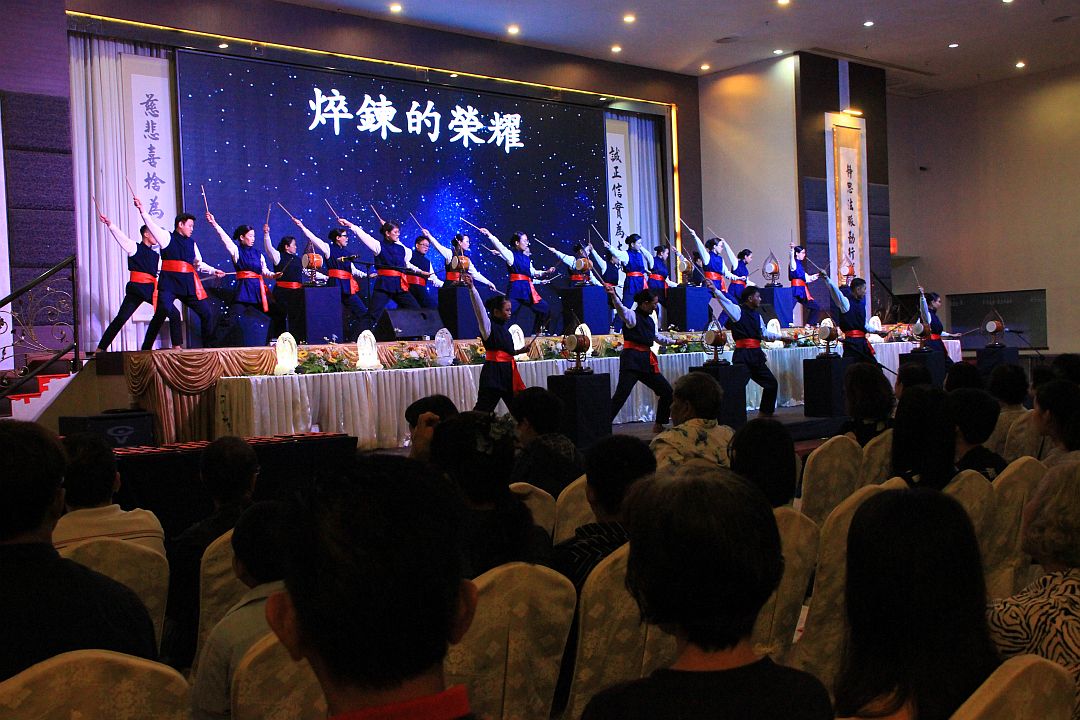 课辅班的孩子在今年开始练习打鼓〈挥洒生命的彩笔〉,除了给他们一个表演的平台,也培养孩子团队的纪律。