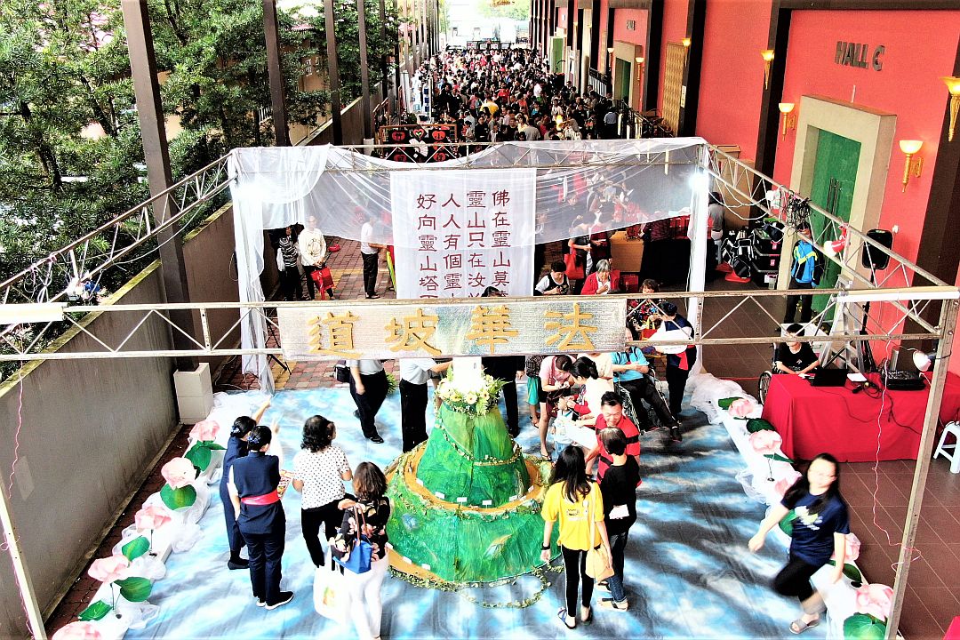 “佛在灵山莫远求,灵山只在汝心头,人人有个灵山塔,好向灵山塔下修……”一踏入岁末祝福会场,就会听到这首偈不断播唱。当进入布展区,仿如置身灵山法会上。
