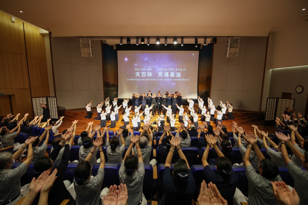 岁末祝福不仅是回顾,志工用心设计场内流程,编排入经藏手语演绎,从梵呗、静思家风、至诚发愿到方向等;台上演绎,台下“法海”(与会者)相互呼应。众人在梵呗声中庄严呈现,更是一场摄住身心的修行历程。一字一偈,佛法不只停留在经文,而是走进生命、走入人群;那不是一场演出,亦是一次回到初心、再度承担宏愿的提醒。