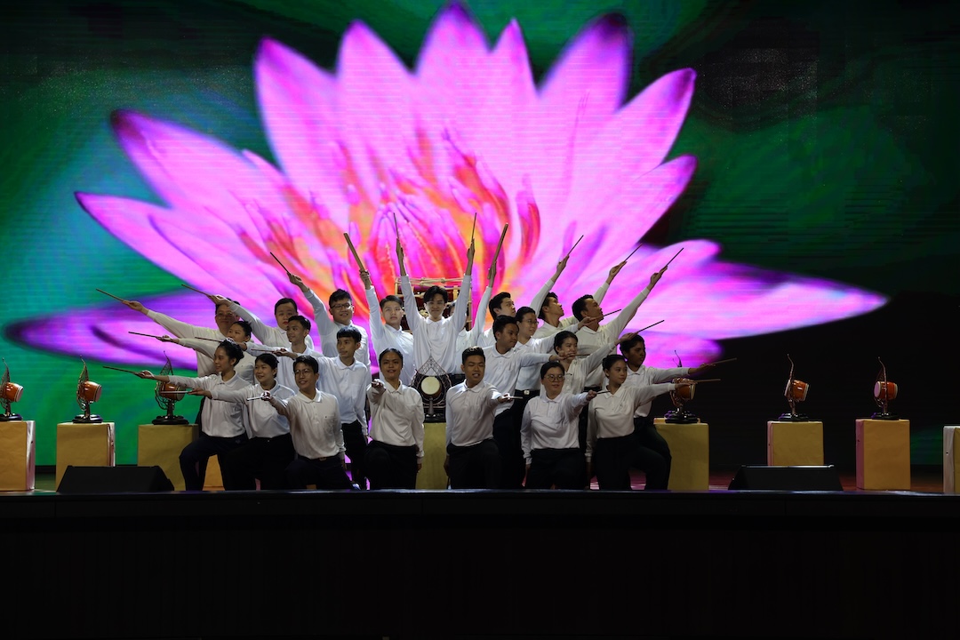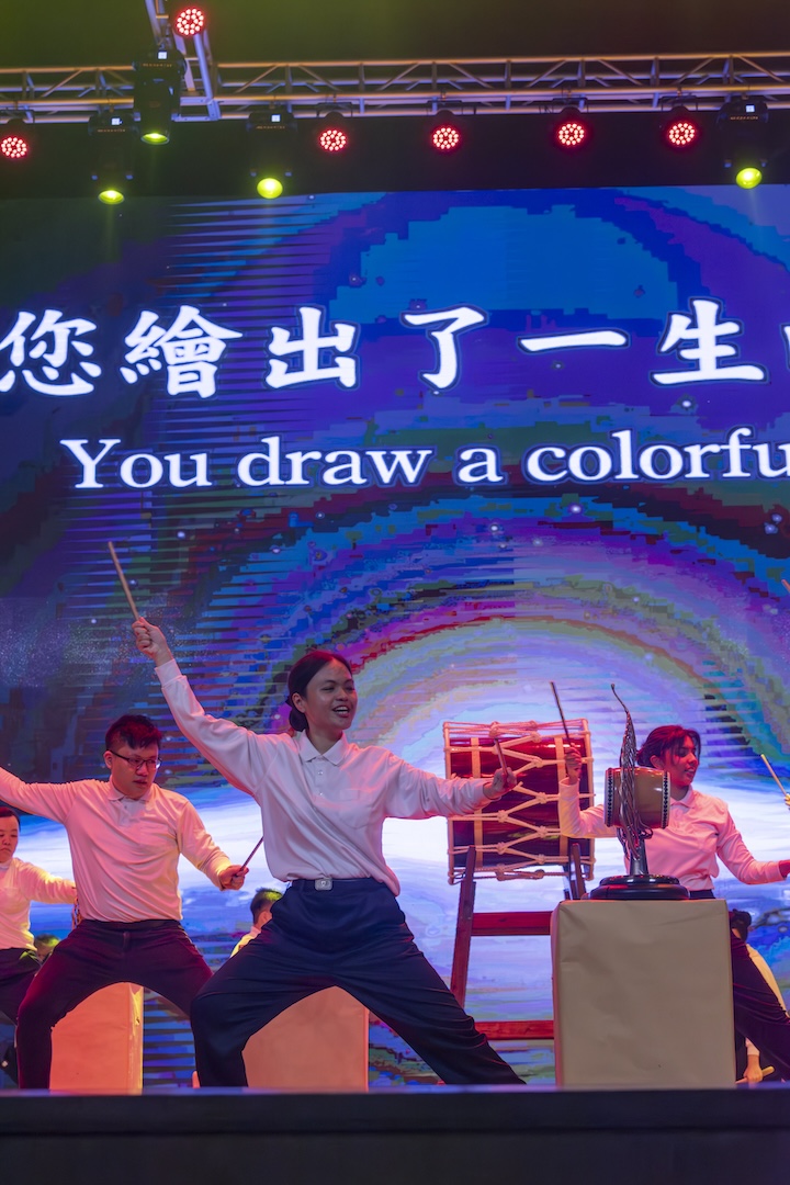 台上鼓队落力挥棒诠释〈挥洒生命的彩笔〉 ,挥洒出年轻人该有的色彩,让青春不留白之际,也让2023岁末祝福,增添了喜气洋洋的气息。