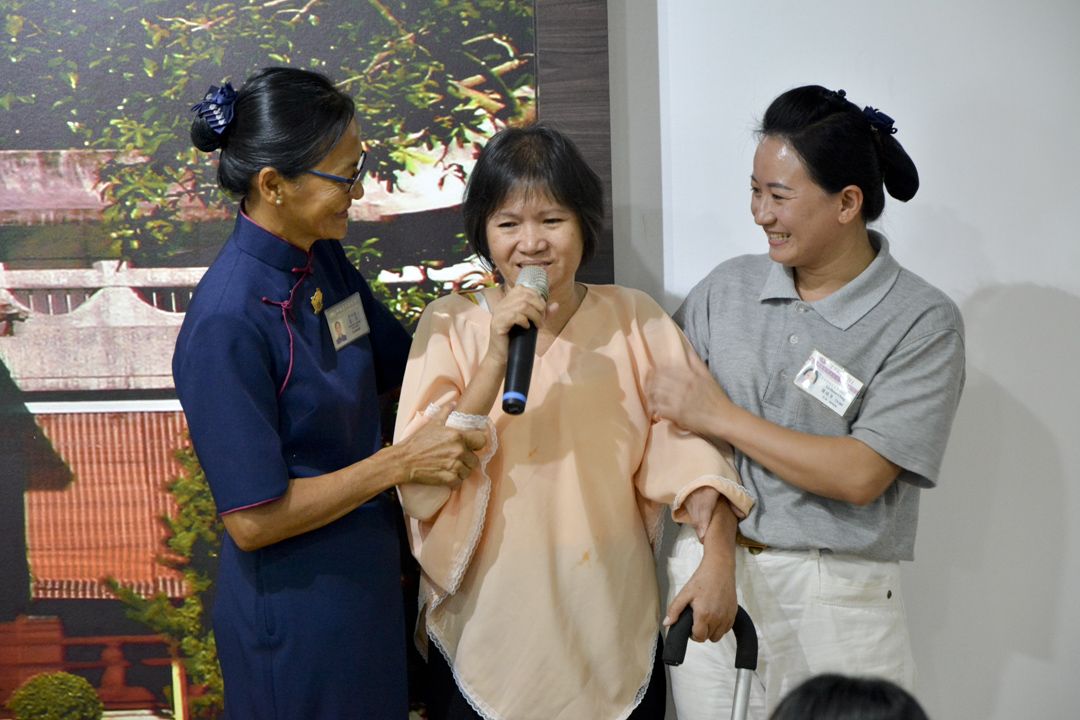 节目一开始,志工们以轻松活泼的《Di Sini Senang Di Sana Senang》进行破冰,现场气氛一下子热络起来,本来羞涩的家长及照顾户们,纷纷露出开心的笑容。