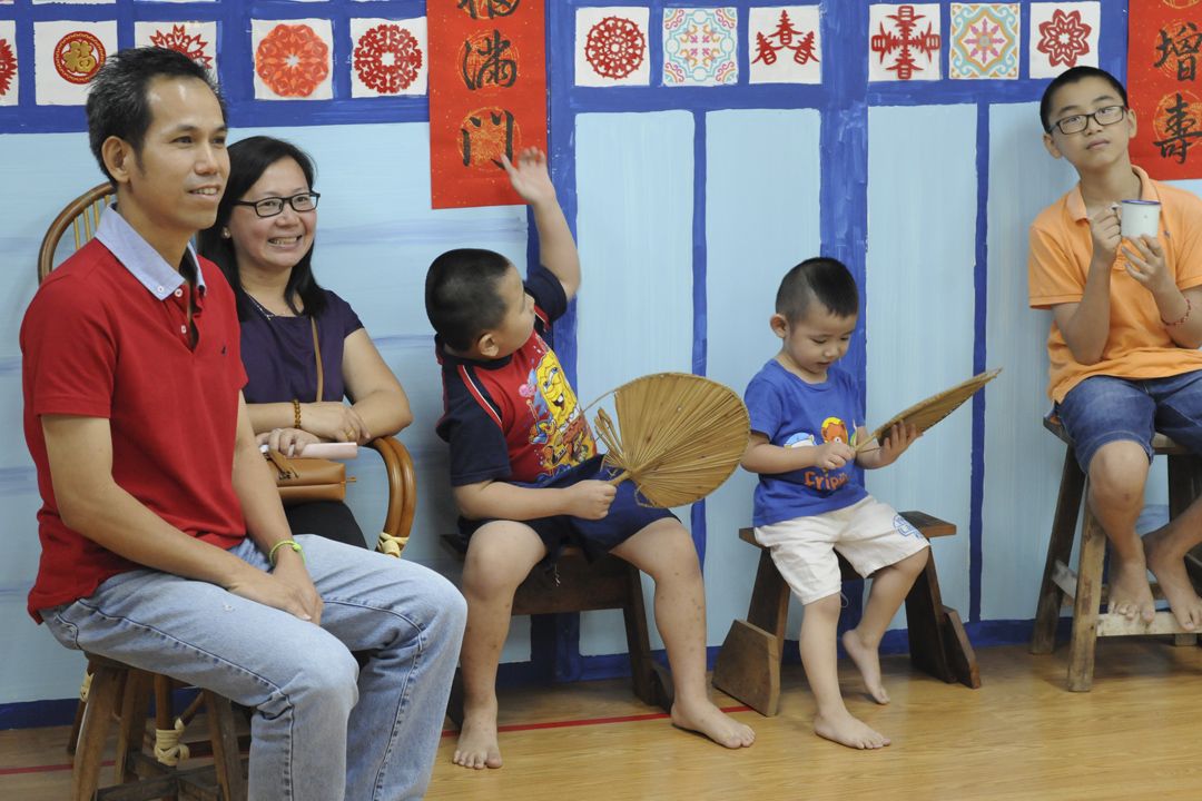 暮色初现,应邀出席“岁末祝福”的人潮络绎不绝地抵达文德甲联络处,志工以“回家”为主题的会场布置,把水泥墙壁“变身”为六十年代木板房屋的门面,大门两侧贴了一对春联,“屋前”亦摆放着一些怀旧的日常用品和几张小板凳,勾起会众的昔日回忆—— 凉风习习的夏日午后,邻里在屋外乘凉、话家常的温馨景象。