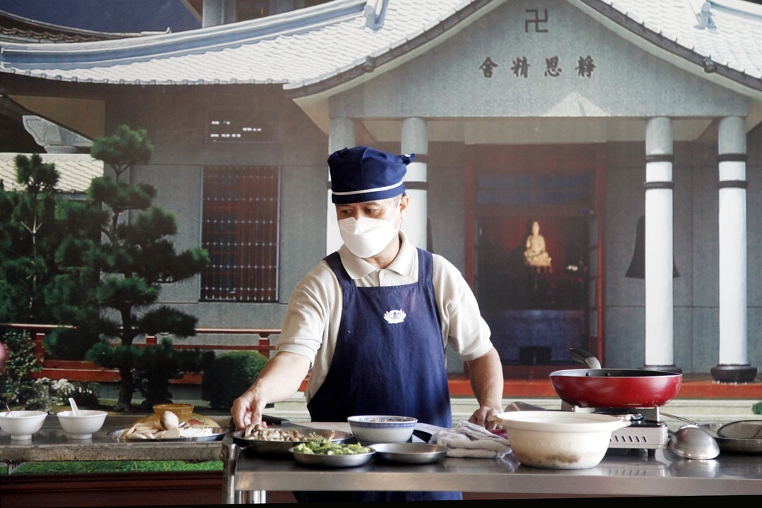 学员态度积极,负责授课的老师也不掉以轻心。他是人人口中的Thomas老师(李兆昌),和慈济合作已经超过十年,协助推广素食的心意不曾褪去。适逢慈济大活动,他经常把握在上班前的空档时间,来帮忙烹煮几道佳肴,或慈济社教中心开设年菜课程,他经常是受邀的老师之一。