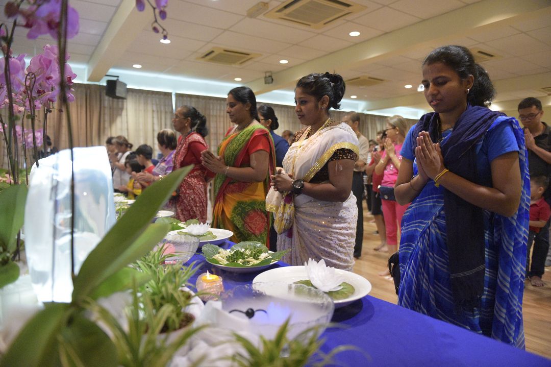同样任职于石隆门中华公学的官诗琼,曾多次参与慈济浴佛典礼,但在唱诵〈诚心祈三愿〉时,还是很感动,因为可以和大家一同祈求世界祥和。她认为在会所举办的浴佛典礼有独特的形式,虽然规模较小,但秩序井然而且庄严。