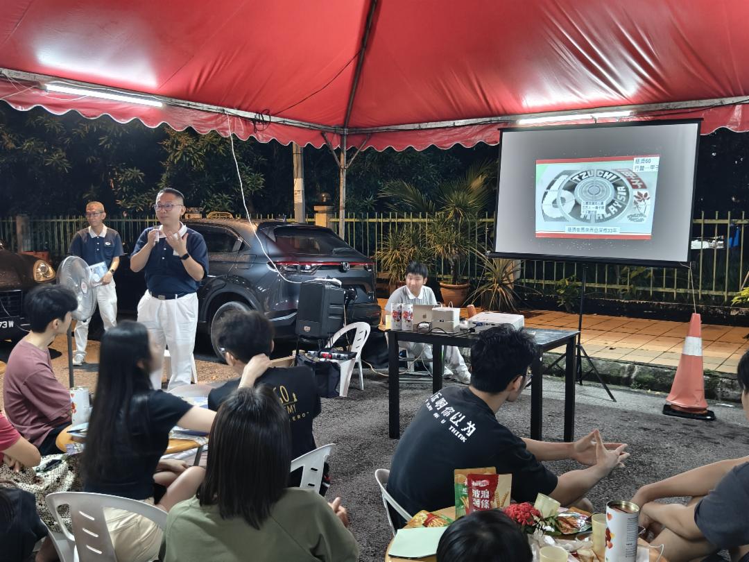此外,4月18日晚,增江区志工在富德盛花园(Taman Fadason )举办爱洒活动,透过热食与糕点接待居民,推广素食理念并介绍慈济四大志业,同时诚挚邀请民众参与即将到来的浴佛典礼。尽管活动前突降大雨,仍有约六十位居民出席,现场气氛温馨。
