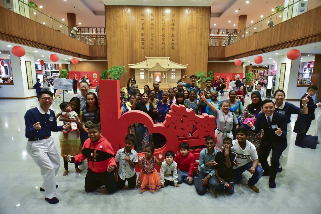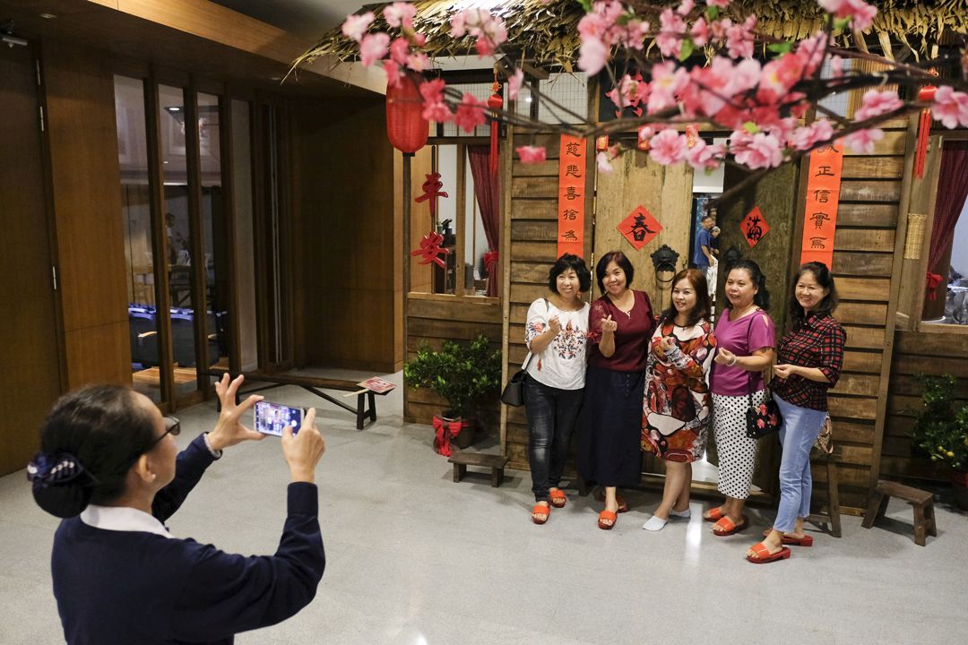 结束内场的心灵飨宴,慈济以素食招待会众,再邀大家绕场看热闹,提早感受有别以往的新年气息和宁静。外场的布置,犹如办喜事般热闹,会众沉浸在愉快祥和的氛围中。趣味十足的外场不但有年味,还有法味,提供大家打卡、照相,还以接地气的方式让更多民众感受现场氛围。