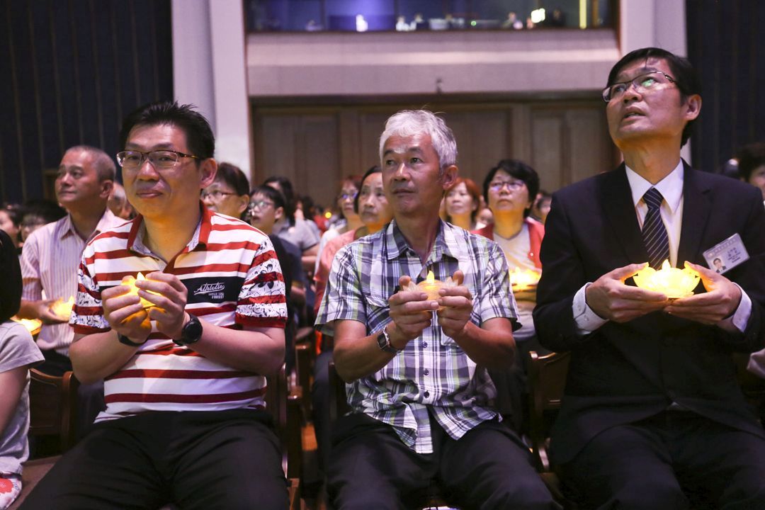 约八百人出席的岁末祝福感恩会内场,一片欢腾气象;随着讲经堂内摄心的氛围,众人的心慢慢静了下来,等待节目的开始。