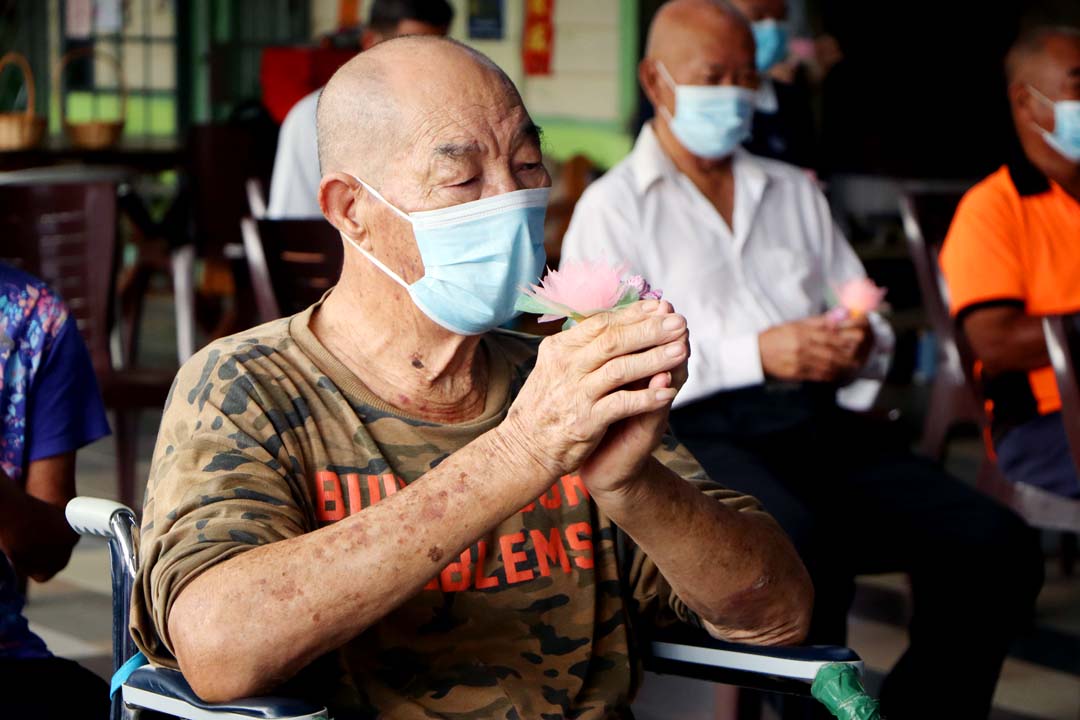 随娘老人安居所里住着来自不同宗教、种族及家庭背景的老人,但是在庄严的浴佛祈福会上,大家不分宗教、种族,呈现人文之美。人人虔诚一念心,共同庆祝三节合一的殊胜因缘。