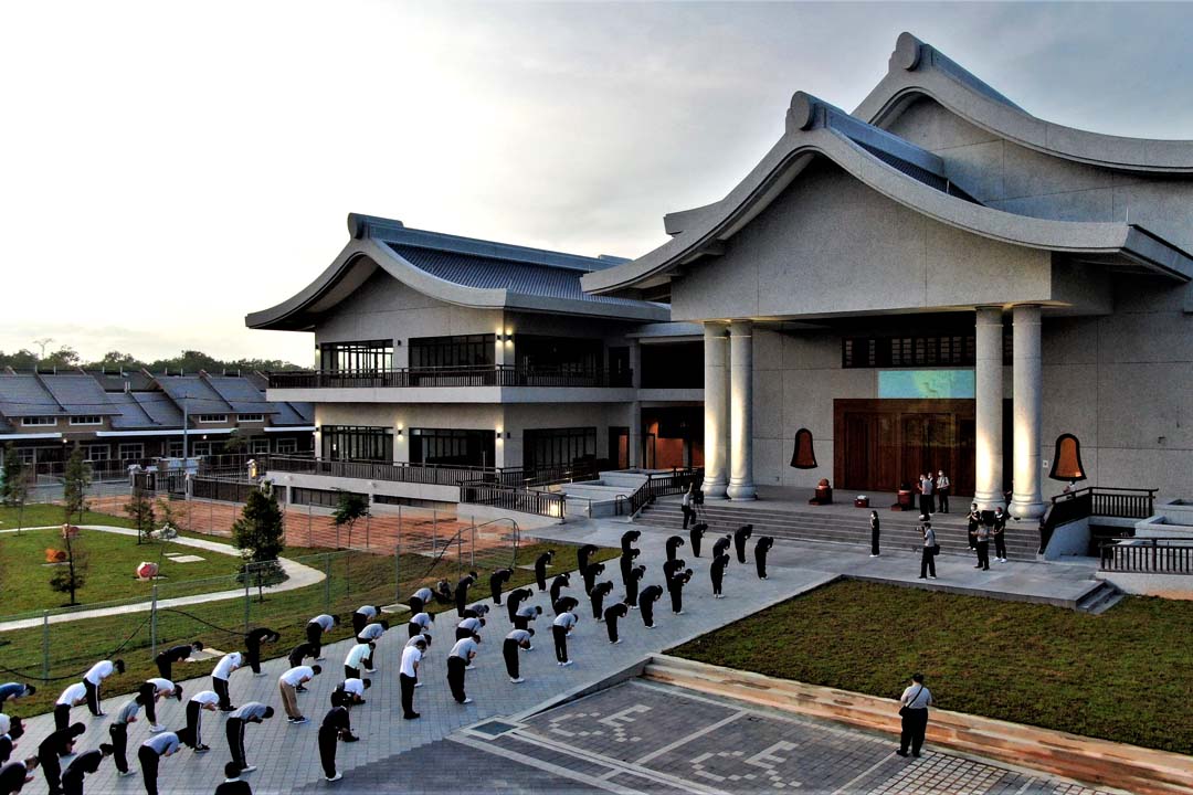 当朝山队伍从外围缓缓踏入静思堂,抬头望向心之向往、期待已久的宝塔;而今双脚踏实站在这片土地,众人的心是感动欢喜。