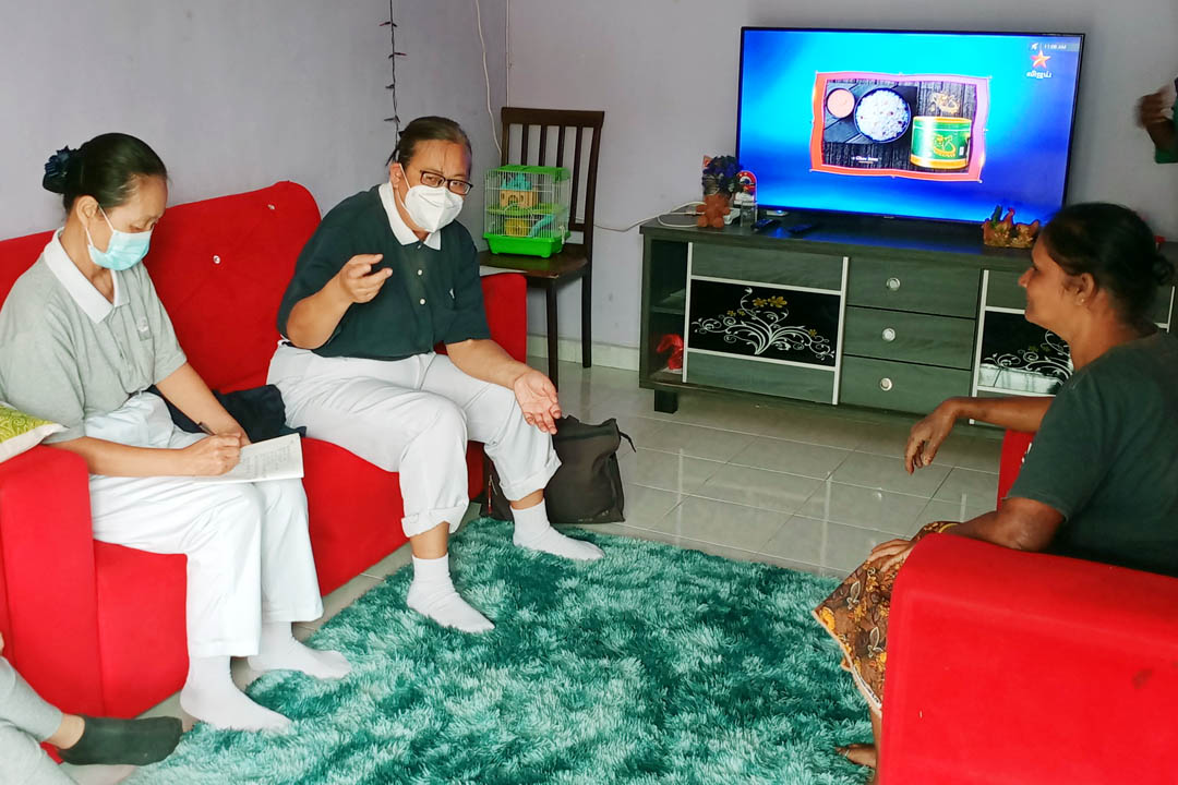 幸而志工的关怀不曾间断,开刀回家休养期间,志工纪丽芳(慈映)也主动烹煮餐食协助调养身体。她感恩地表示,纪丽芳开解与劝导,再加上社区志工持续抚慰,以及有志工提议在家中安装大爱电视台,请上人直接入家门讲经说法,才救了她一命。