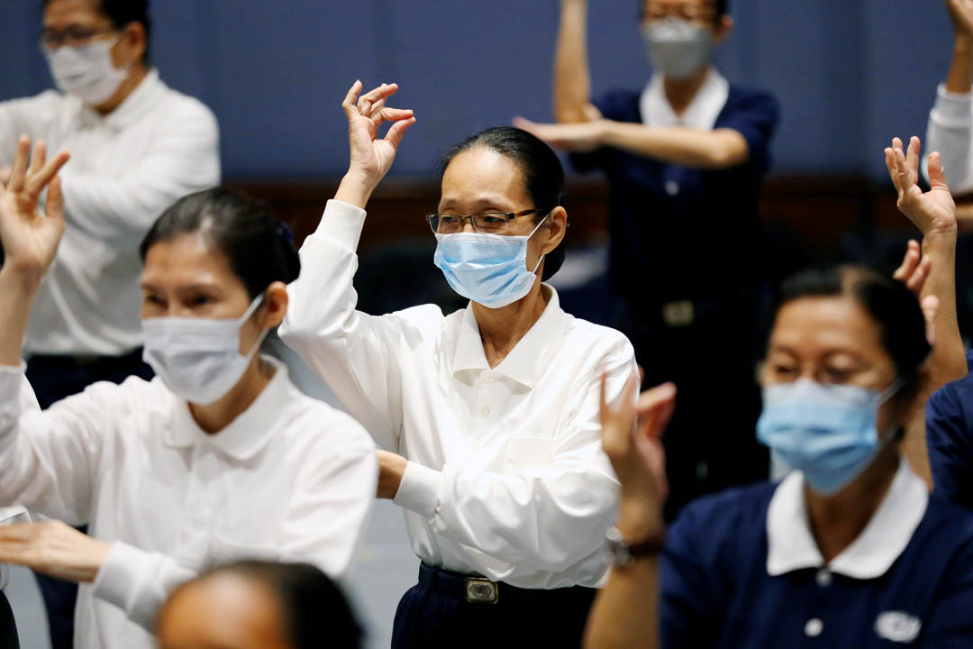 “我先报名参加,事后获知有无须跪拜的简化动作组别,正好解决问题!每个星期五我都很开心来参与演绎与共修,进一步深入了解经文意涵,在家也经常唱诵帮助自己熟悉旋律和记住偈文,无形中洗涤我的心与烦恼。”吴秀娟欢喜分享。