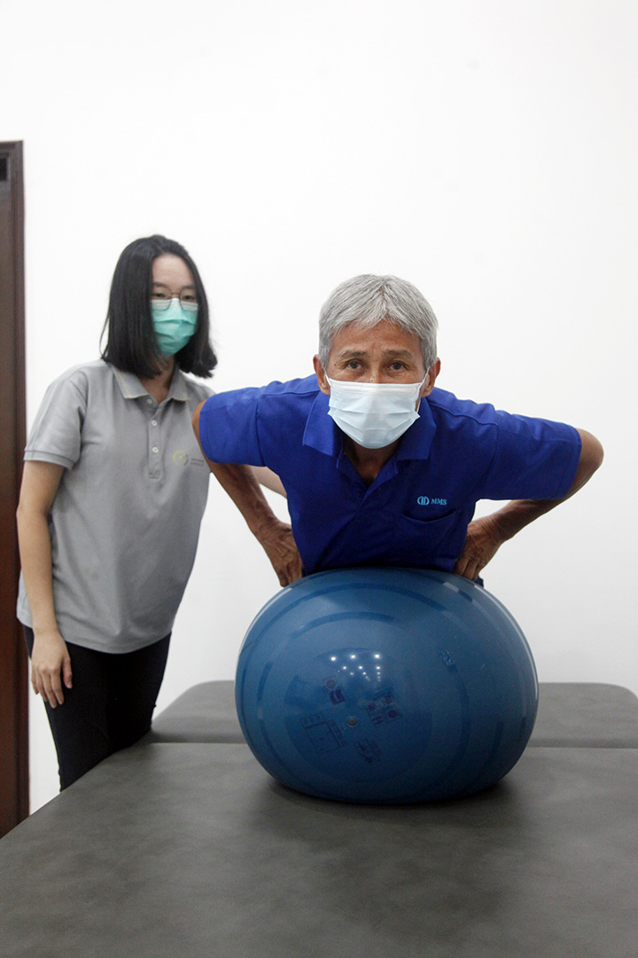 然而,在医院复健的两、三次经验,却让他感到效果有限。他说:“病人多,没有办法一个一个慢慢教,也没有说明解释。”疼痛未明显改善,他一度感到灰心。最后在亲友介绍下,获悉慈济马六甲分会提供B40家庭免费物理治疗服务,转而来到慈济社区门诊中心,开始另一段复健旅程。