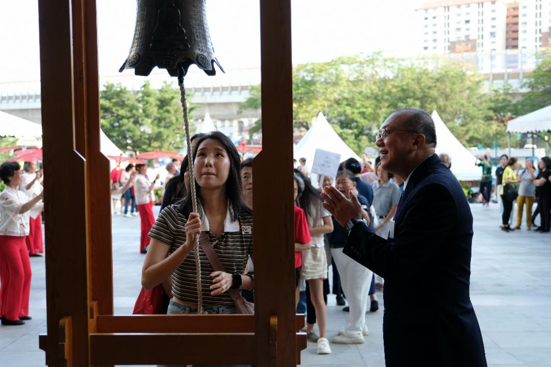 志工用心筹备,让岁末祝福不仅止于观礼,而是一段可参与、可感受的时光。步入协立广场,约十位乐龄女士以广场舞热情迎宾;会众可敲钟、击鼓,或点灯许愿,为新的一年祈福。