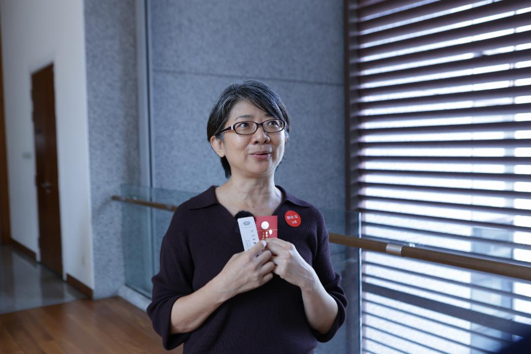 黄昭虹领取上人的有缘卡,形容它不仅是祝福,更像心中一颗种子,提醒自己不能只停留在“想”,而要付诸行动。【摄影:锺国義】
