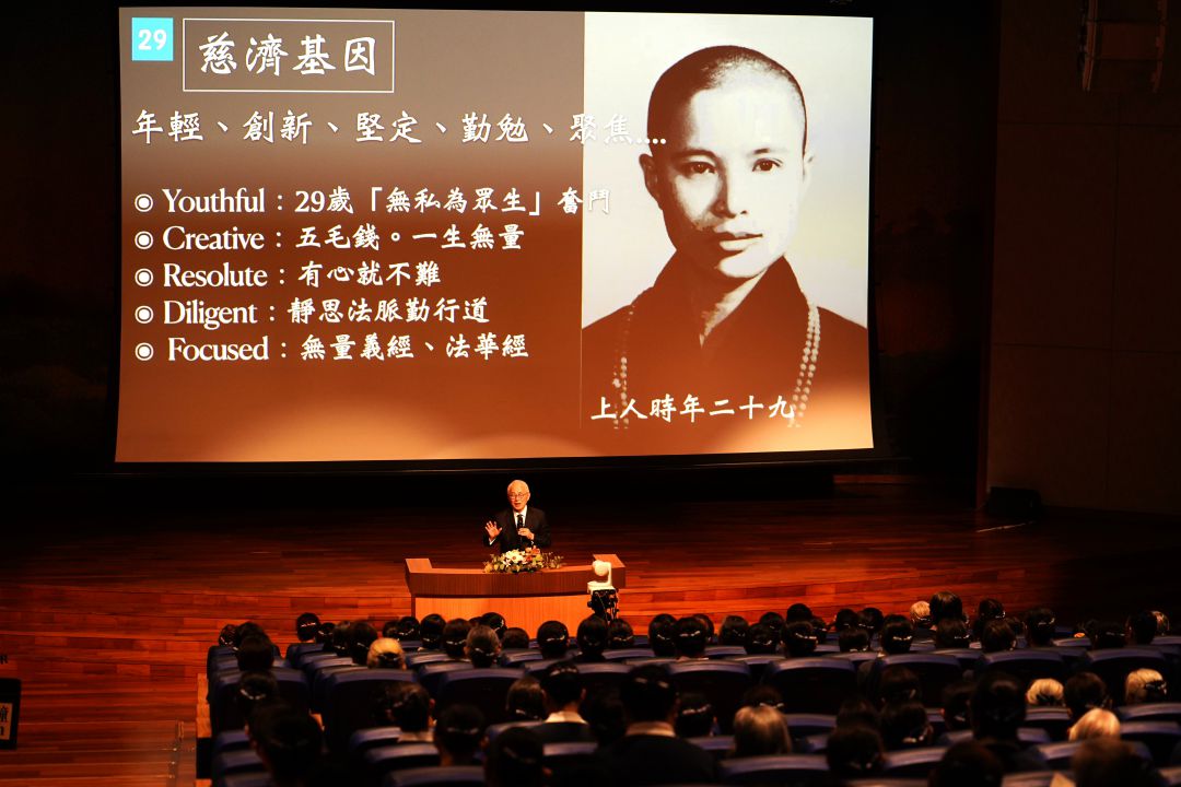 姚仁禄告诉大家慈济基因乃是“年轻、创新、坚定、勤勉和聚焦”。他分析道,慈济在草创时期,就是由一群年轻人合起来,在没有力量当下决心要去做一件很困难的事;同样的,佛陀成佛时也是很年轻。他补充说:“无私为众生,是年轻人的特质;慈济最重要的一个元素就是年轻,我们一定要把这个年轻的精神传下去。”这好比上人标新立异的想法,“寿量宝藏”,把五十岁存入“寿量宝藏”,重新用年轻的精神来投入付出。