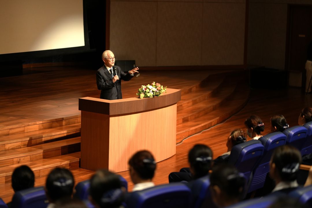 结束前,他说了最后一个故事:因为不受供养,上人与常住师父众为了制作婴儿鞋,到裁缝店回收剩下的布料缝制。他感慨地说:“由此可见,慈济的环保志业,其实从慈济草创期就已经开始了。慈济的所有事情,随着因缘,做得很早、做得很久,为的是设法把众生的苦减少,度他们走向彼岸。”