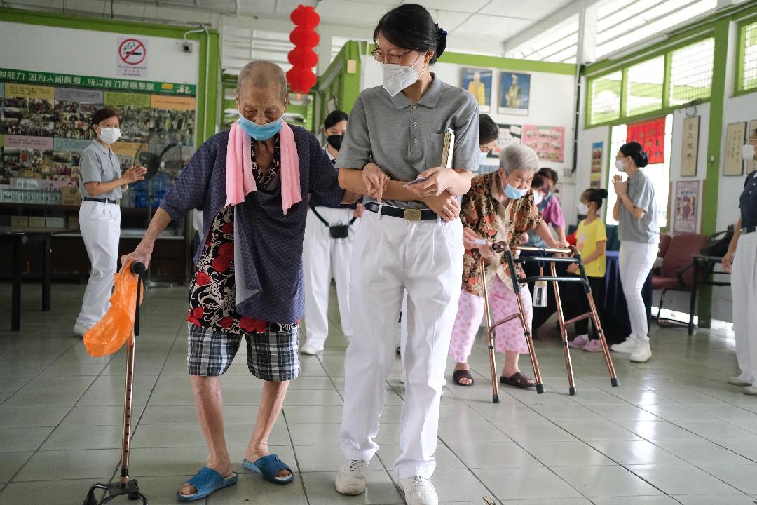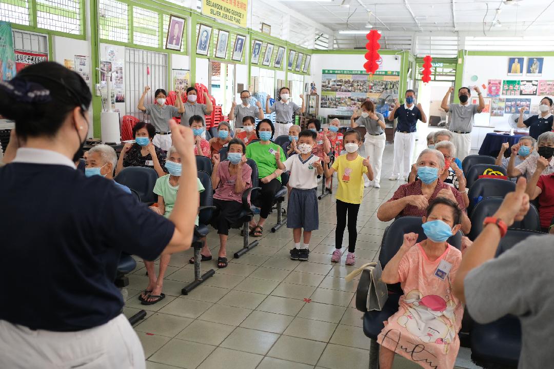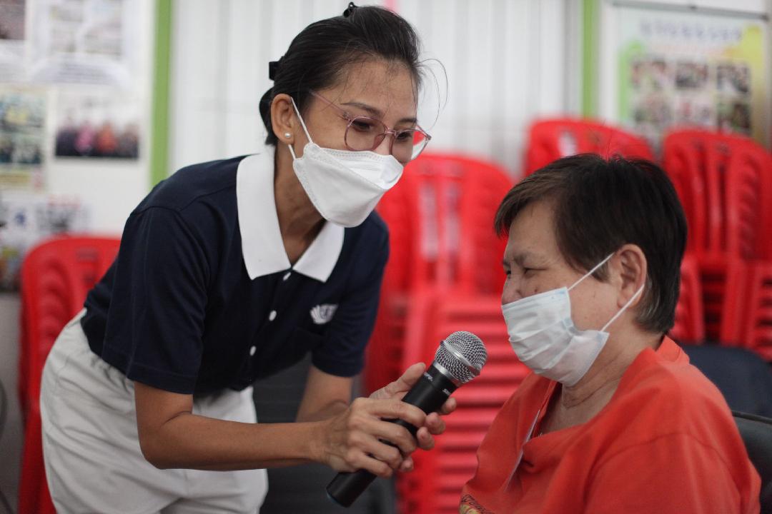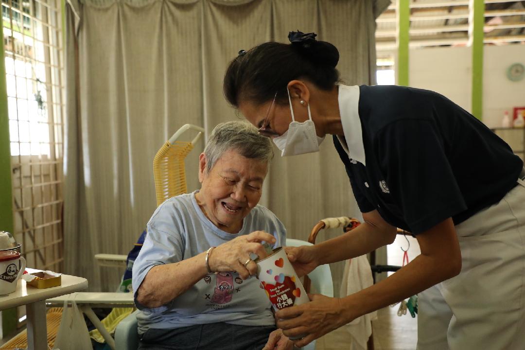 直到八年前,许阿嬷年老,加上脚痛导致行动不便,便申请住进银禧老妇院,因而有缘再接触志工,令她欢喜不已。而今,有三年不见志工,再相见倍感亲切,志工准备的节目也令她回到以往那快乐的时光。