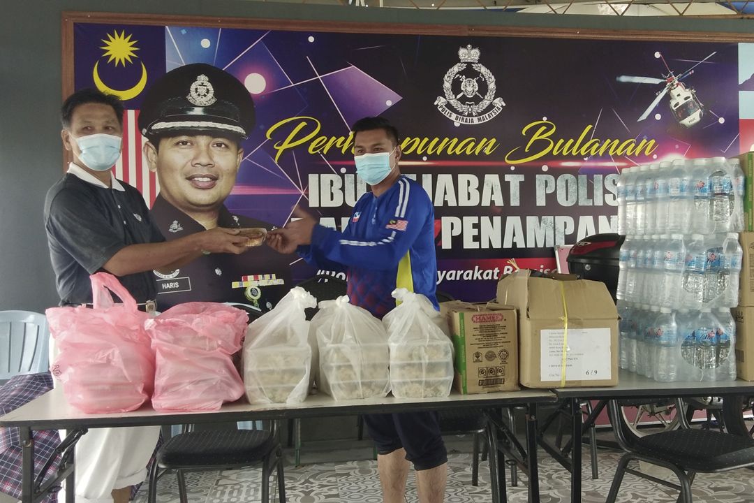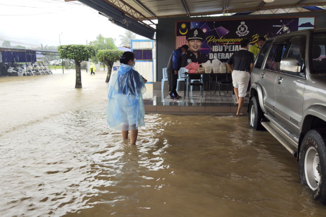 2021年1月16日,滂沱大雨造成兵南邦县在一夜之间变成“‘水乡”,多个路段无法通车,大部分民众以小船为代步工具。隔日积水仍未退,水深过膝,当地警局也难幸免,有五十位执勤警员面对无法外出的困境,需要一些干粮及瓶装水应急;慈济主动联系警局关怀他们的安危,经商议后,志工们穿着雨衣,涉水步行把饮水、干粮及热乎乎的盒饭递给警员,让他们感觉窝心。