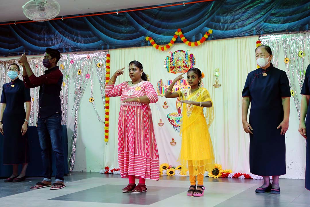 去年志工在社区中心与照顾户共庆屠妖节,莎拉瓦蒂负责一切的联络事宜;今年,她和两位孩子一起上台,与四位志工用手语呈献温暖关怀的歌曲〈给你〉。她说,慈济人就像歌词所提到的家人感觉,伸出温暖双手、无私无求,即使已停止补助,却没有停止关怀她们。以前她们有困难,慈济帮忙,现在还有那么多人需要帮忙,她们也要贡献一分力,因此全家不但响应竹筒岁月和米扑满,只要慈济邀约,多会来参与活动。