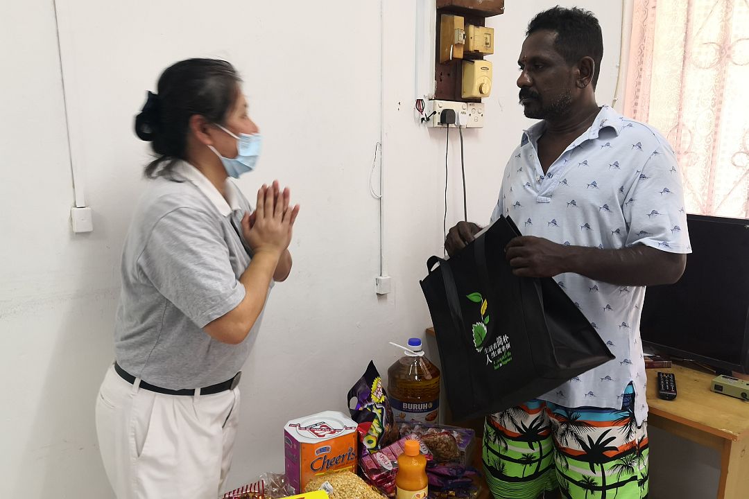 “我没有工作,就没有了收入,慈济来到家里帮助我们,给我钱买东西给妻儿吃,买奶粉给孩子喝,我真的非常感恩慈济的援助。”育有三名孩子的慈济照顾户卡莱(Kalai A/L Marippan),原本在新加坡当一名清洁工,今年三月新加坡疫情严峻封锁国界,家有妻小的他,薪水还没领,不得已赶在封城前返国。