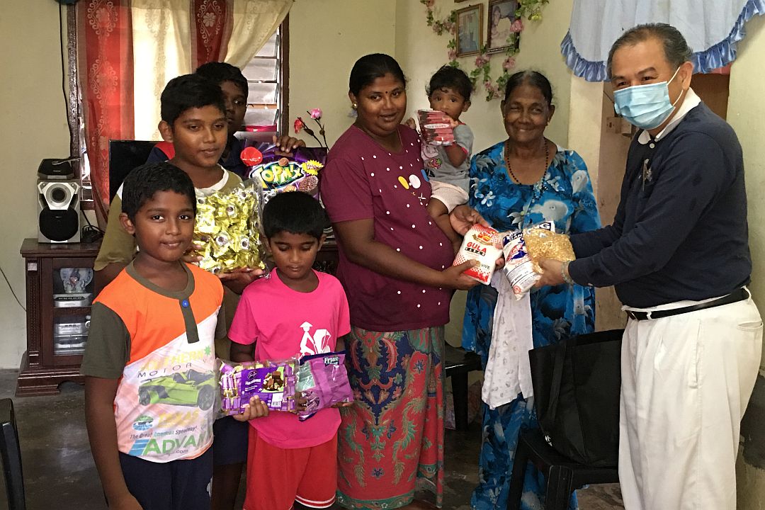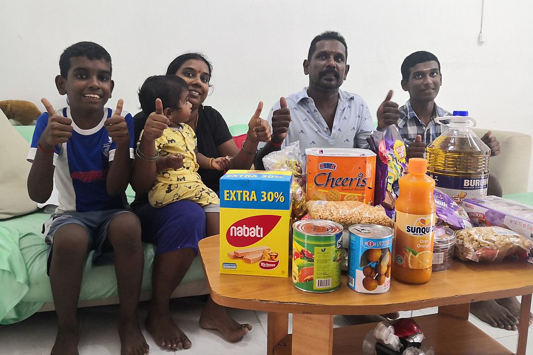 育有五名孩子的希丽瓦妮(Srivani)一家八口住在空间不大的房屋。有四个孩子正在求学,另一个嗷嗷待哺。丈夫在油棕厂做工,并患有严重的哮喘病,只靠他工作养家糊口,生活清苦。孩子们看到志工送来的佳节礼包,里头有许多糖果饼干等,个个显得好开心,脸上充满笑容。