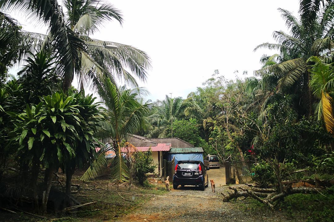 11月8日中午,五名志工载着屠妖节礼包,驱车一个小时,来到偏远的哥打丁宜甘榜穆希巴(Kampung Muhhibah)。由于地处荒山野岭、屋少人稀,志工对此地陌生,于是便到拉让双溪巴板淡米尔学校(SJKT Ladang Sungai Papan),请印裔家长带路,途经崎岖的油棕园,右转又左转,穿过橡胶园,转个弯,在荫茂的油棕园里终于看到一栋房子。
