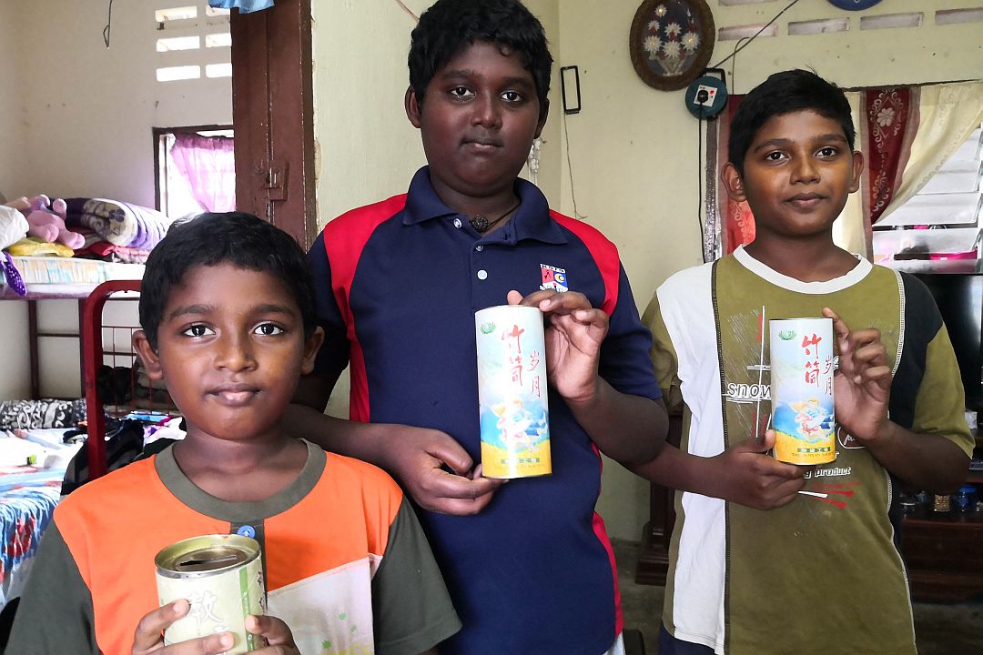 第五次获得慈济助学金的大儿子尼特斯(Nithesh),品学兼优,对科学颇感兴趣。他表示:“我会用功读书,希望长大后能成为一名科学家。”平时会把零用钱存起来的他,和两名弟弟一起把爱心扑满捐出来,帮助有需要的人。