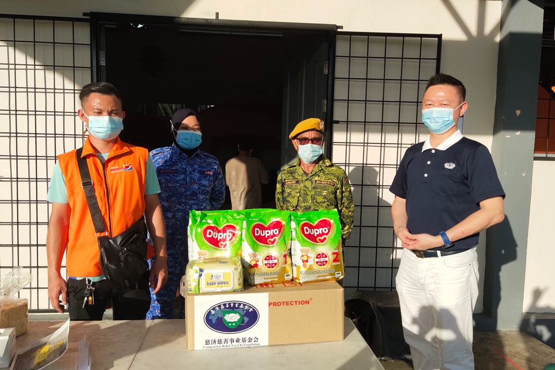 救灾之余,志工亦不忘提醒灾民严守疫情标准作业程序。志工把从亚庇带来的口罩发放予四所疏散中心,嘱咐他们顾好疫情防护,保护自己,兼顾他人。除此,志工们到附近的商场采买物资后,即把奶粉及尿片递给保佛天灾救灾中心及保佛政府中学礼堂的工作人员,同时也派发婴儿湿纸巾给保佛政府中学礼堂疏散中心,因为此所中心的孩童人数比较多,其中还有一位出世十二天的婴儿。