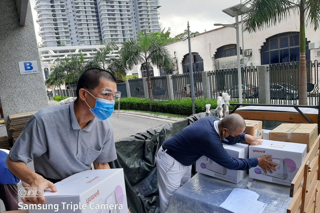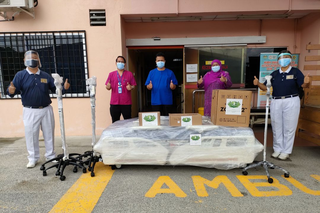 日叻务医院院长诺阿姿扎医生(Dr. Nor Azizah)亲自到来接收。院长表示,“无限感恩慈济捐助这批医疗器材与物资,希望能够帮助郊区县医院更多的新冠病人!”