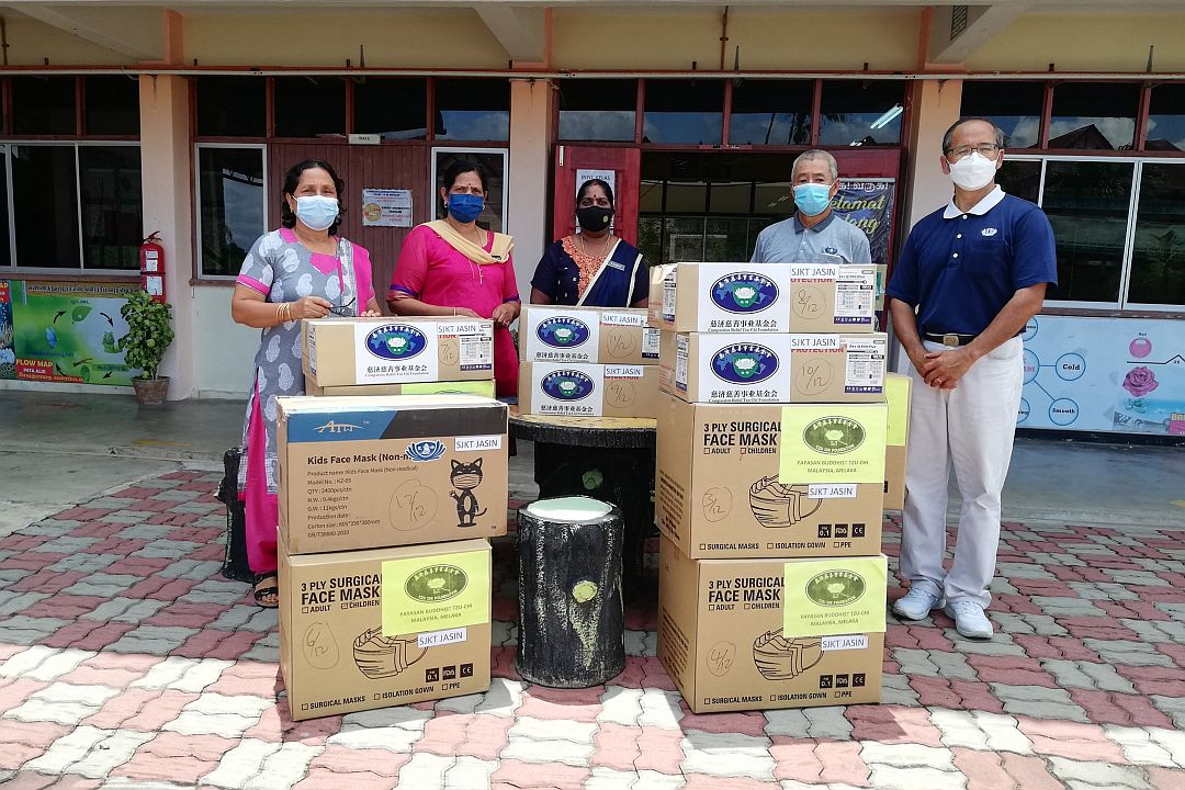 与此同时,志工也致电十八间与慈济合作“幸福校园计划”的淡米尔小学,得知他们也需要防疫物资如口罩,因此展开连续三天的送爱之旅,送出两千三百五十六盒口罩。