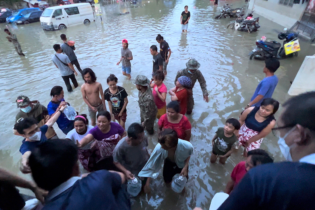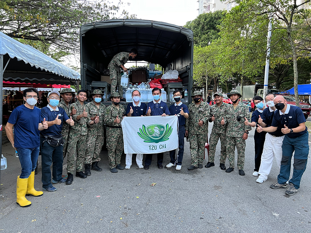 由于担忧被困在灾区多日的灾民缺水、断粮,慈济雪隆分会六位志工由副执行长苏祈逢(济祈)的带领下,在皇家武装部队(Angkatan Tentera Malaysia)(陆军-- Tentera Darat Malaysia)协助下,于傍晚六时许,将一辆载满饮用水、热食、麵包、饼乾、蜡烛等物资的七吨大型军用卡车深入灾区,发放给当区灾民。
