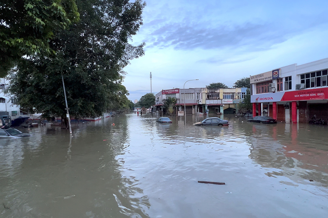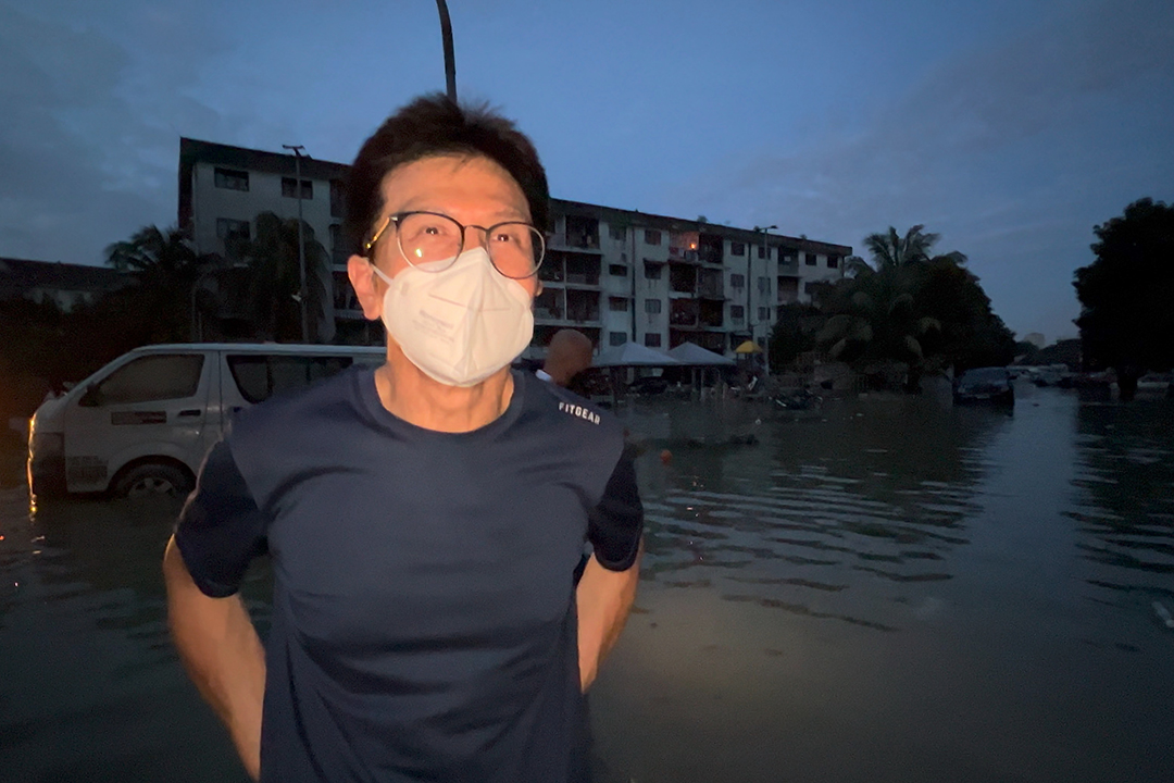 2021年12月21日,莎亚南太子园(Taman Seri Muda)艳阳高照,许多地方的水位已逐渐退至安全水平,然而,位于太子园二十五区八十三路的组屋区的水位依然淹至成人的小腿。