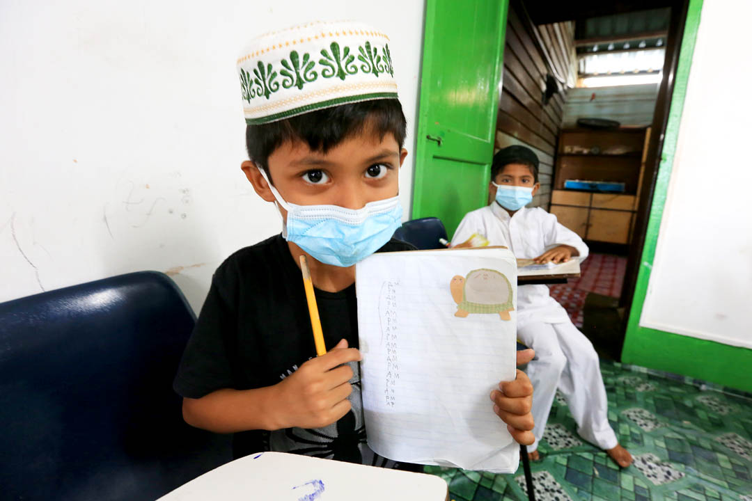 今年四十三岁的莫哈末哈仑老师深有感触,他自己约八岁时随着父母亲逃难至孟加拉,住在难民营无法拥有平等的受教权,没有机会上学。幸而难民营内设有临时教育中心,再加上难民署的支持让他可以顺利读到中学。相似的背景与遭遇,莫哈末哈仑深知唯有教育能够脱贫与改变命运,因此即使半天工资有限,但为了帮助孩子融入社会,他接下教职。“我会罗兴亚语、马来语与英语,让我沟通无碍,辗转搬到马来西亚,我曾在吉隆坡难民学习中心教书,也曾在非营利组织当过翻译,知道教育的重要。这三个月来先教英文,之后陆续再教导其他学科。”