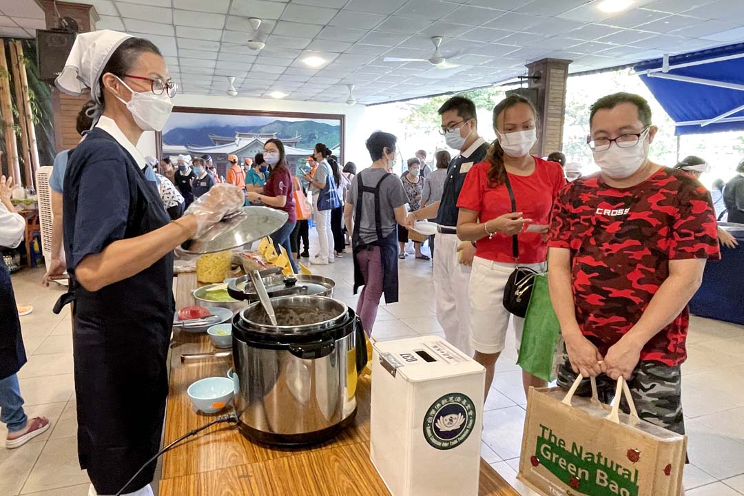 1995年,当小孩还在幼儿园就读她就认识慈济,2003年卫塞节带着孩子来慈济参加活动,席间看见播出的影片《生命的呐喊》,之后便多蔬食至今,她希望更多人能够斋戒,护众生,实践环保在生活中,护地球。今天,她也打包了蔬食,在商品区采购干粮蔬菜等,以行动响应与支持慈善,蔬食和环保。