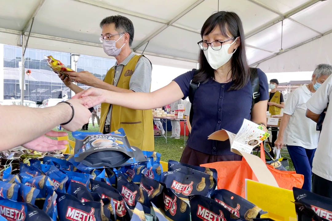 今年吴雅莲依然承担商品区,她感恩地说:“团队愈来愈庞大,爱心商家愈来愈多,例如人缘素食斋料供应有限公司,这些年来一定响应义卖,店家并邀约供应商一起共善,提供更多资源义卖。Yong Confectionery一通电话说明慈济慈善义卖,彼此未曾见面,便一路护持至今,还有水果商、饼干厂……实业家志工陈宝凤(虑暐)、陈玉芳(虑详)、刘渼娇(慈茹)等发心募商品,也投入烹煮与募集热食义卖;而响应义卖的民众也逐年增加…… ”感恩的事说不尽。