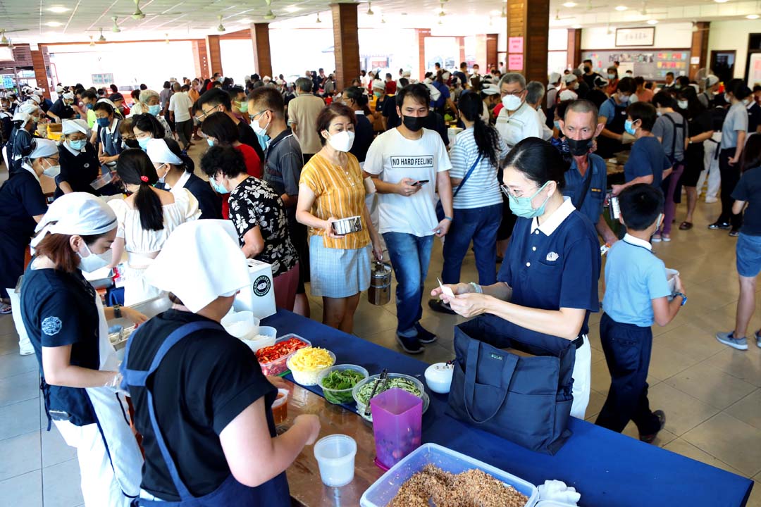 义卖从九点开始,八点多民众便陆续抵达现场,人潮不断涌入,欢笑声、锅炒声、叫卖声、询问声此起彼落,人人手里拿着环保餐具与环保袋,穿梭在各个义卖区间,以行动支持,携手共善,让大众的爱心加倍循环。