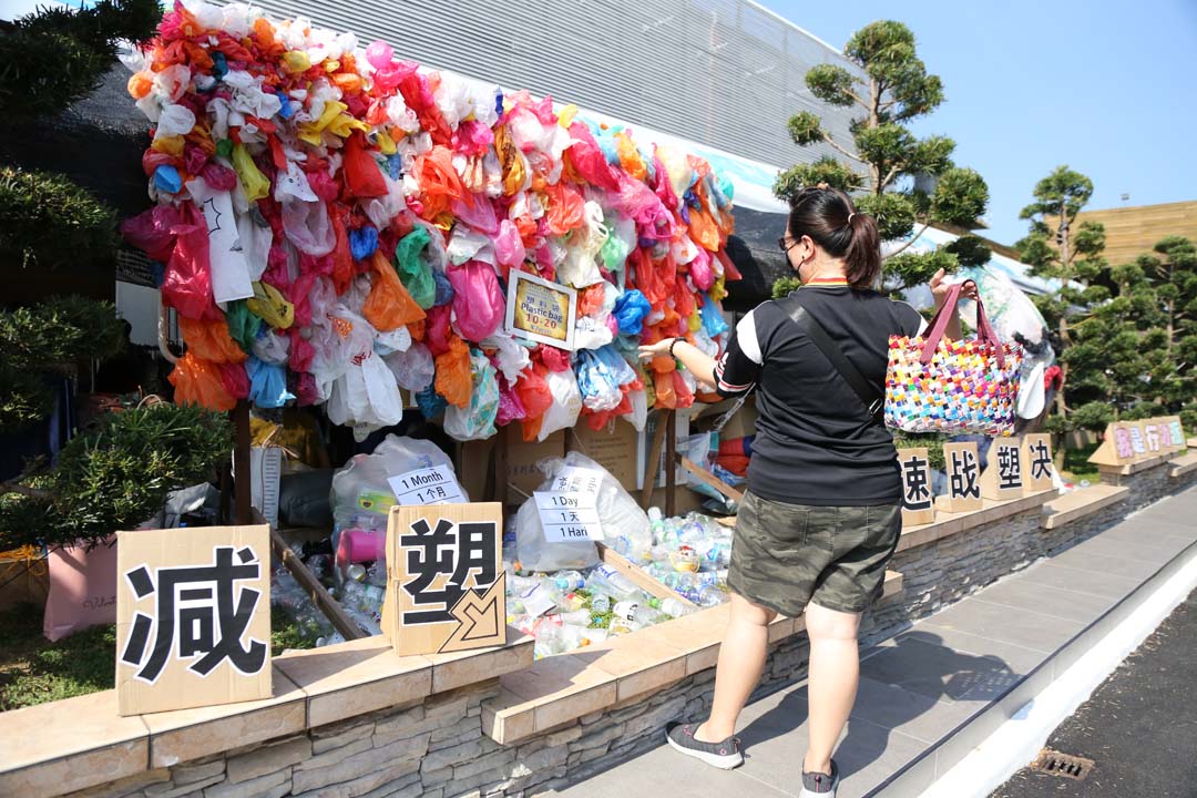 另一位八十多岁的黄秀强,一大清早载送太太黄金妹前来义卖会当志工,便拿着环保袋到各义卖区逛逛。