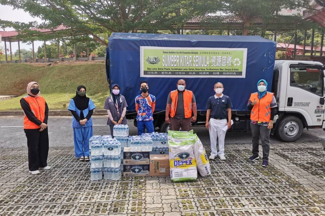 了解实况,经过慈善小组讨论议决,慈济志工们于6月11日应隔离中心所需,根据中心的人数进行分配,提供矿泉水、饼干、肥皂粉、肥皂、牙膏以及牙刷等物资。