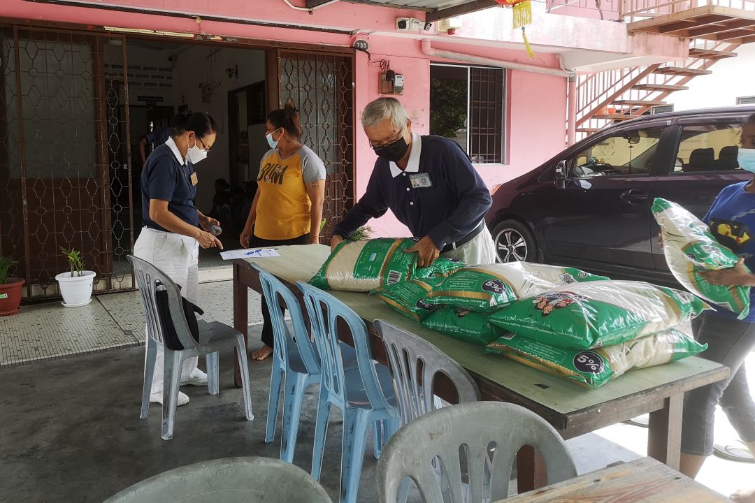 在获知所需的物资后,6月29日中午,志工到批发商处采购物资,直接送到孤儿院。孩子们在大厅兴奋地探头观望,年龄较大的则帮忙卸货。发放的物资包括白米、食油、米粉,鸡蛋、大葱、马铃薯、美禄、印度豆(Kacang dhall)及罐头黄豆;除了粮食,也不忘送上防疫物资即六盒口罩和十二瓶净手液。