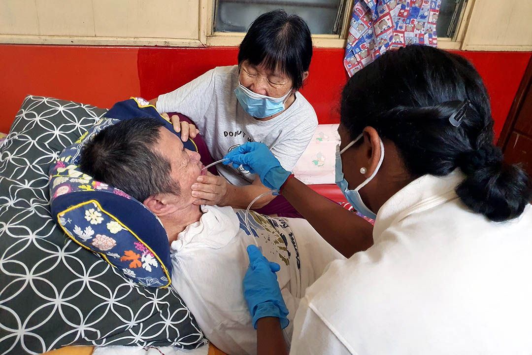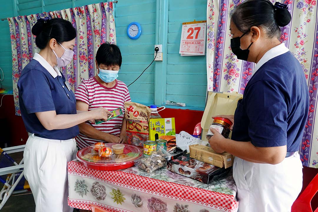 体恤孩子的不易,郑真金一肩扛起日夜照料丈夫起居生活的责任,孩子则分担生活开销及其他照护用品。奈何2020年疫情行管令,生活一切停摆,收入大受影响。大儿子主动联络慈济马六甲分会,申请补助父亲每月大量使用的成人尿片,因此展开慈济与这户人家的因缘。