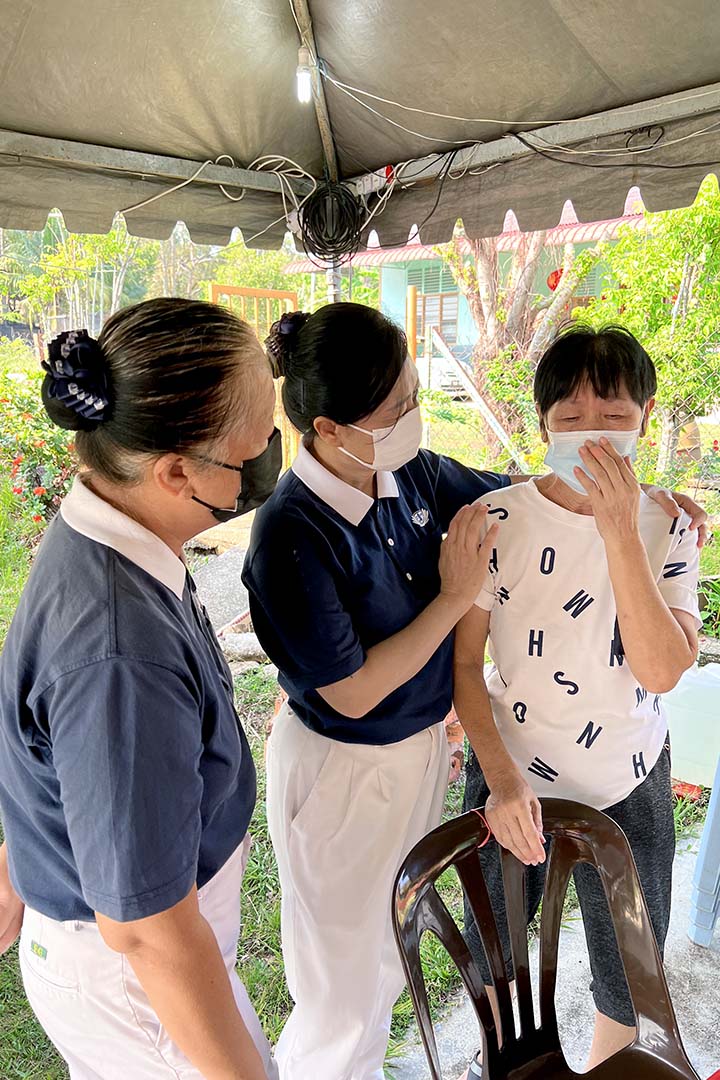 曾经多次上门护理伤口的义诊中心护士珊蒂亚(Santhia A/P Rasamanikam)更是红了眼眶。她伤感说,uncle(刘天赐)是她接手的首个伤口护理个案,看见他的辛苦,她特别做了许多学习和规划,期待能减轻他的痛楚;却没料到无常瞬间发生,让她一时间无法接受。然而和志工一起瞻仰往生者遗容,看见对方安详离去的模样,她也放下心中不舍,转为祝福。