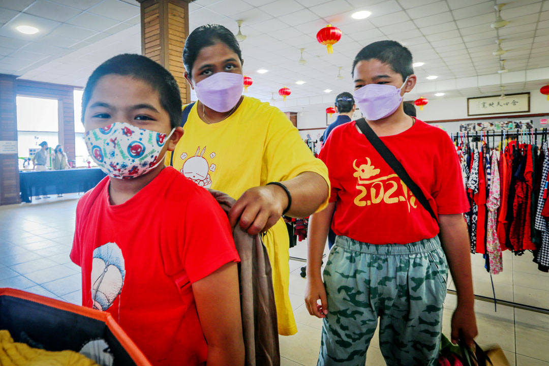 另一边,邓文莲女士带着两个孩子在惜福区挑选电器与衣服,当孩子们开心地一件件试穿着衣服,她则开心地陪伴在侧,让孩子自在地挑选喜欢的衣物。她笑言:“华人新年将至,其中一个儿子2月即将出社会工作,把握今天来惜福区结缘衣服回家。外面买一件衣服马币几十令吉,到几百令吉,真的无法负担。每年岁末发放惜福区是我为孩子添购衣服之时,前几年疫情没有举办活动也无法为孩子们添购,今天一次将前三年的份买齐。”