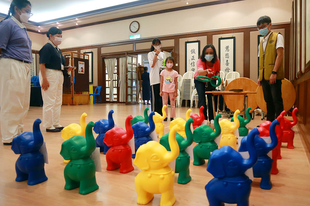 斋堂里,志工陪伴照顾户们享用温热早餐话家常;义剪区,专业美发师协助剪个清爽亮丽发型过新年;亲子游戏和手工区,一家大小开心闯关玩乐,或写春联与制作应节手工装饰;义诊区,物理治疗师和医护人员专心为病患看诊与治疗。把握相聚同欢时刻,一次服务到位,庆祝年节也照顾大家的身心。