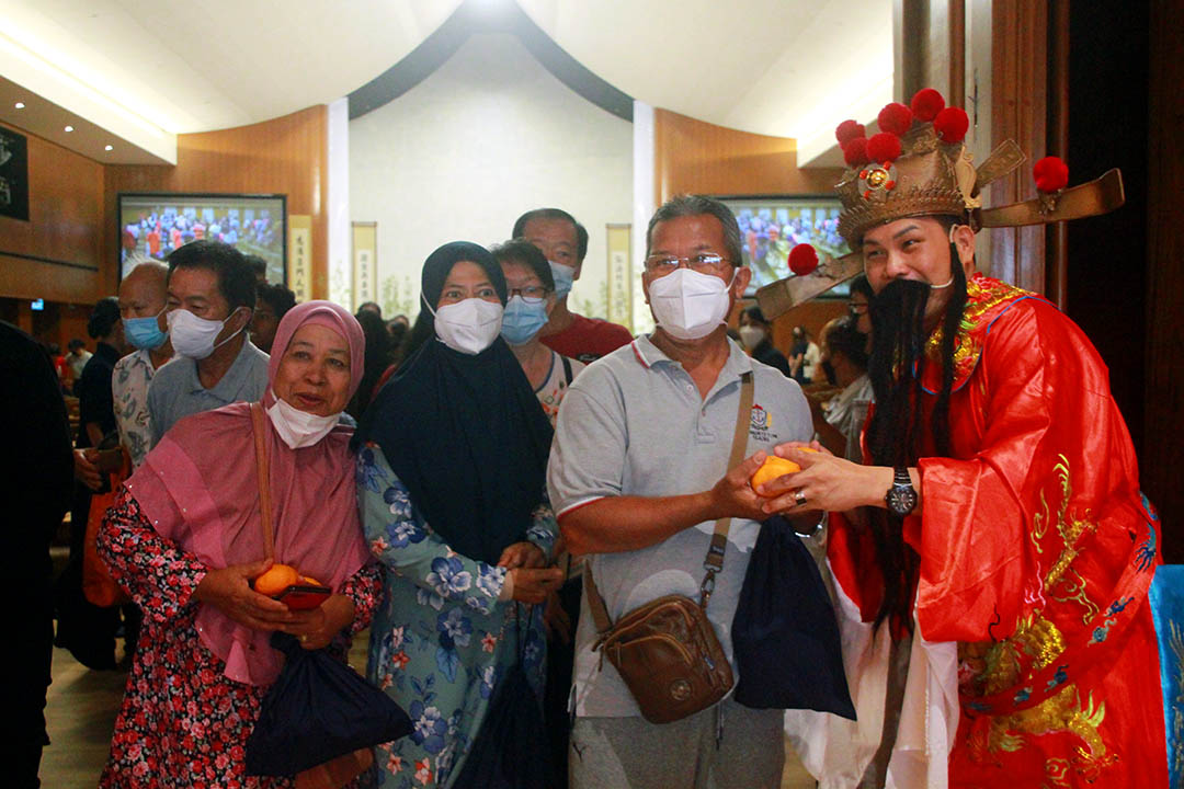 慈济麻坡支会举办照顾户岁末发放,三大民族齐聚在静思堂,吃一餐暖心的团圆饭,一百八十二位照顾户与家人欢喜赴约。