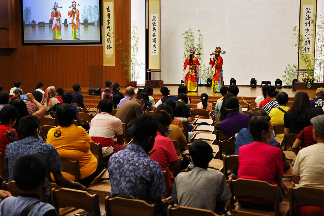 慈济志工在大门口迎接“家人”回来,只见许多照顾户扶老携幼,欢喜赴约,每个人的脸上笑眯眯。志工带领众人参观静思堂;也有志工推着坐在轮椅上的照顾户,贴心帮忙拿取食物;更有些志工专车专送,提供“五星级”的服务。