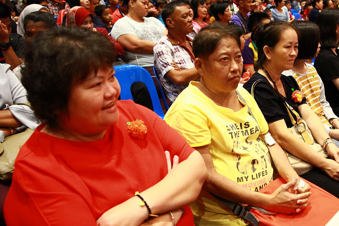 洗肾病患陈丽云因病导致视力退化,对于台上的精彩节目,她眼前是一片模糊,只能靠听觉和感受现场氛围。今天姐姐陈丽鹃难得有空,知晓妹妹很期待出席岁末发放,因此特地载她前来。第一次参与,虽然陈丽云看不清楚,身体有些许不适,但能与大家凑热闹迎新年,她心里还是很高兴,坚持留到活动结束才离开。