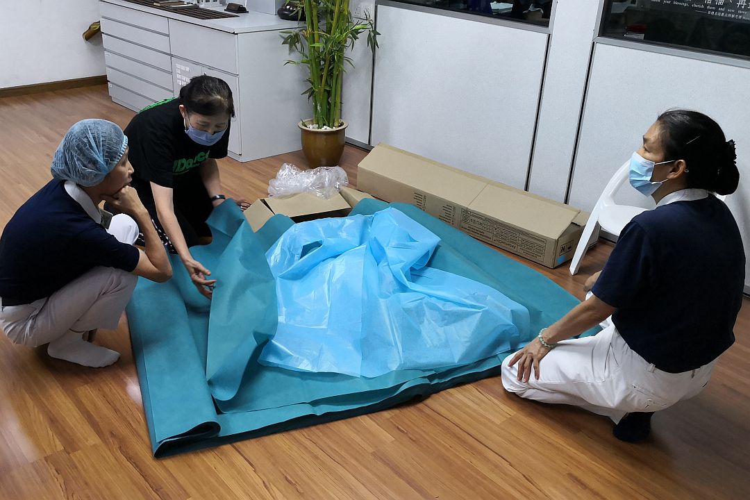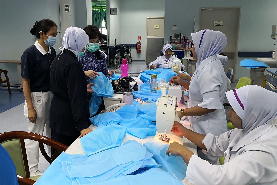当志工拿到院方提供的样品及材料,马上联系懂得裁剪的志工,一起讨论制作流程。而接获这项主要任务的志工徐国贞(慈憬),即刻动员其制衣厂的数位员工一起为爱付出。徐国贞感慨,中国发生疫情时,她认为离马来西亚多么遥远,似乎与我们无关,然而疫情快速蔓延到我国,政府采取了管制行动,令她难以置信,也担忧在最前线与疫情对抗的医护人员。